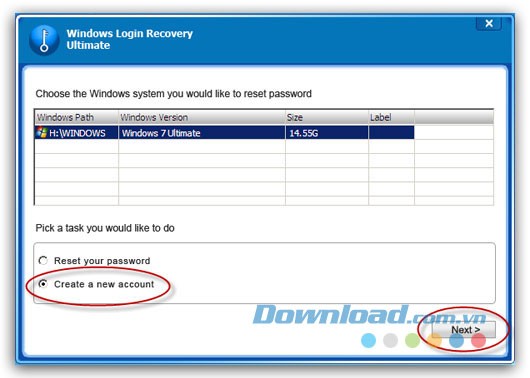 Khởi động chương trình Windows Login Recovery Ultimate từ đĩa CD/DVD để tiến hành khôi phục.