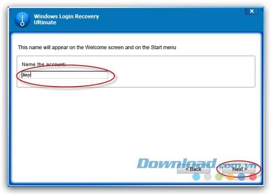 Để tạo tài khoản quản trị mới, nhập tên tài khoản mong muốn vào ô. Nhấn Next để tiếp tục quá trình tạo mật khẩu mới.