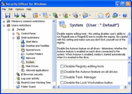 Bạn cũng có thể tạo các thư mục cấu hình hệ thống riêng cho từng người dùng và cấp quyền truy cập theo ý muốn trên màn hình desktop. Các hạn chế bổ sung bao gồm việc chặn các mục trong menu Start, ẩn các ổ đĩa, ngăn chặn truy cập vào dấu nhắc dòng lệnh DOS và ẩn các biểu tượng trên desktop.