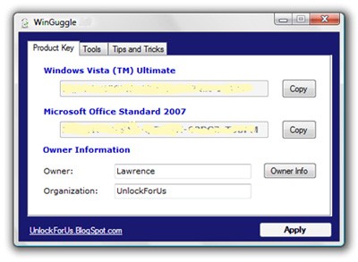WinGuggle được thiết kế như một công cụ hỗ trợ hữu ích, cho phép người dùng phục hồi khóa sản phẩm (key) của hệ điều hành Vista khi chẳng may quên hoặc bị mất.