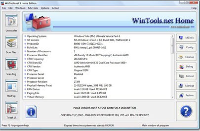 WinTools.net Ultimate tích hợp các công cụ hữu ích sau: