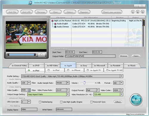 Điểm nổi bật của WinX HD Video Converter Deluxe là khả năng hỗ trợ đa track video HD mà không cần đến các codec của bên thứ ba. Nó tương thích với nhiều định dạng như BDAV, m2ts, MKV, AVCHD, HDTV và các file video MPEG-TS.
