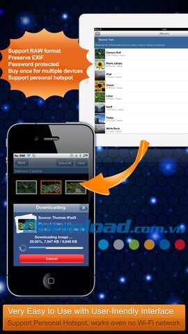 Ngoài ra, ứng dụng còn hỗ trợ tải ảnh và video từ máy tính lên các thiết bị iOS qua kết nối không dây.