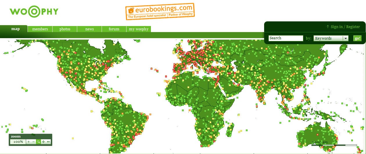 Woophy là một nền tảng bản đồ hình ảnh trực tuyến, nơi bạn có thể chiêm ngưỡng những bức ảnh từ khắp nơi trên thế giới. Nền tảng này cho phép các nhiếp ảnh gia và những người yêu thích chụp ảnh chia sẻ những khoảnh khắc đáng nhớ tại những địa điểm họ đã từng đặt chân đến.