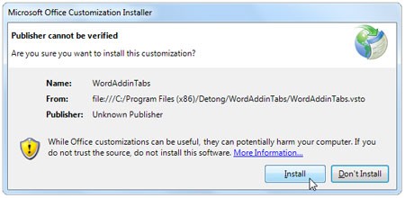 Cuối cùng, hệ thống sẽ hỏi bạn có muốn cài đặt các tùy biến cho Office hay không. Chọn Install để tiếp tục quá trình cài đặt.