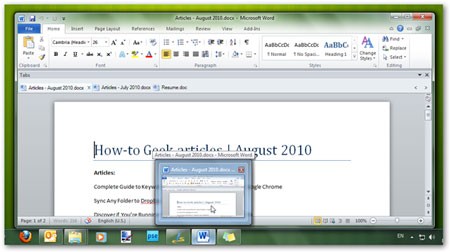 Doc Tabs cũng tương thích với Word 2010 và hoạt động tốt khi bạn chỉ thực hiện các thao tác soạn thảo văn bản thông thường.