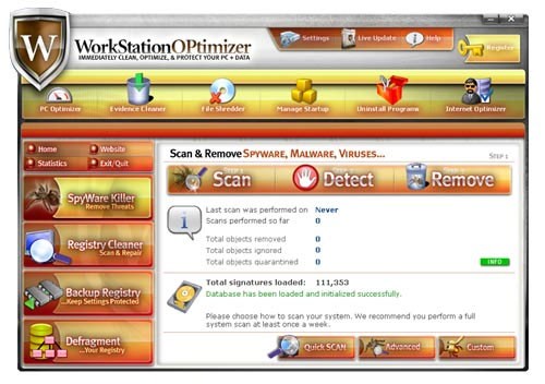 Spyware Killer: Đây là một điểm mạnh của WO, không chỉ là công cụ tăng tốc mà còn có khả năng quét và loại bỏ các loại Malware (trojan, spyware, threat…) với cơ sở dữ liệu hơn 100,000 mẫu và được cập nhật thường xuyên. Quá trình quét bao gồm: