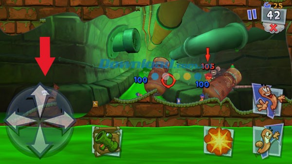 Bạn có nhiều lựa chọn để điều khiển Worms 3, bao gồm cơ chế chạm và cử chỉ truyền thống hoặc chế độ điều khiển D-Pad mới.