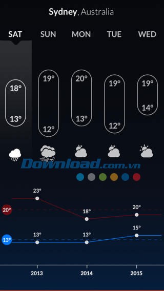 Ngoài ra, ứng dụng còn cung cấp biểu đồ dự báo thời tiết 7 ngày tương tác và biểu đồ so sánh nhiệt độ hàng năm được cải tiến cho mỗi ngày.