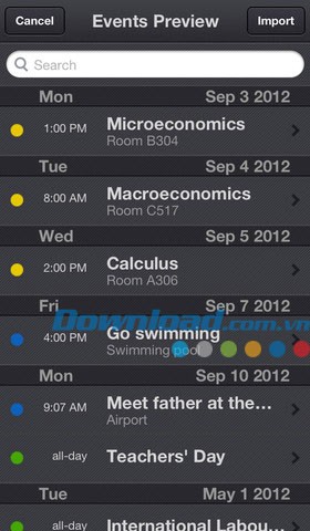 Ứng dụng cho phép xuất toàn bộ các sự kiện từ nhiều ứng dụng lịch khác nhau trên iPhone, bao gồm lịch Local, Exchange, CalDAV, Subscription và Birthday.
