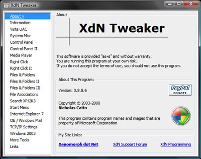 XdN Tweaker là một tiện ích hoàn toàn miễn phí và có dung lượng nhỏ, tương thích với mọi phiên bản của hệ điều hành Windows. Phần mềm này trang bị những công cụ hữu ích, cho phép người dùng tùy biến và điều chỉnh Windows để đáp ứng tốt nhất nhu cầu sử dụng cá nhân.