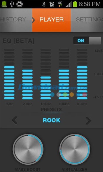 Bộ cân bằng âm thanh tích hợp (có sẵn cho Android 2.3 trở lên dưới dạng bản thử nghiệm) cho phép tùy chỉnh âm thanh theo sở thích cá nhân.