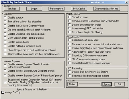 Công cụ này hỗ trợ người dùng thực hiện các tác vụ như vô hiệu hóa tính năng autorun, cải thiện tốc độ hiển thị của menu Start, ẩn danh sách các tài liệu vừa mở hoặc tinh chỉnh thời gian khởi động và tắt máy tính,…