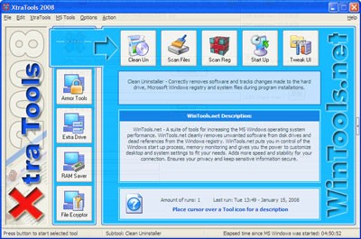 XtraTools 2008 là một bộ ứng dụng tập hợp hơn 20 tiện ích hệ thống riêng biệt, được thiết kế để hỗ trợ và mở rộng các chức năng mặc định của hệ điều hành MS Windows.
