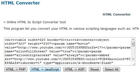 Yellowpipe là một trang web cung cấp nhiều giải pháp hữu ích cho các dịch vụ trực tuyến. Nổi bật trong số đó là công cụ hỗ trợ miễn phí, đặc biệt hữu ích cho các lập trình viên web, cho phép chuyển đổi mã nguồn HTML sang các ngôn ngữ lập trình phổ biến như JavaScript, PHP hoặc ASP.