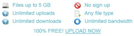 Người sử dụng dịch vụ này không bắt buộc phải đăng ký tài khoản, không bị giới hạn về số lượng tập tin tải lên từ một thiết bị, dung lượng sử dụng hay số lần tải xuống của mỗi tập tin, đồng thời hỗ trợ nhiều định dạng khác nhau.