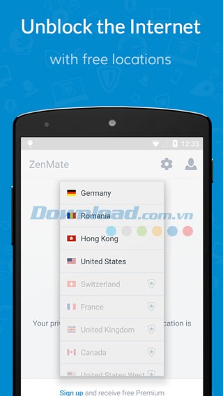 ZenMate hoạt động hiệu quả ở mọi nơi – tại nhà, trên đường đi hoặc khi kết nối Wifi công cộng – giống như một hostpot shield cá nhân. Ứng dụng này dễ sử dụng và mang lại sự bảo vệ toàn diện.