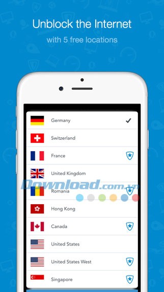 ZenMate giúp bạn vượt qua mọi rào cản truy cập các trang web bị chặn, đồng thời ẩn địa chỉ IP bằng cách thay đổi vị trí địa lý thông qua mạng VPN miễn phí. Bạn có thể lựa chọn kết nối từ 5 quốc gia khác nhau trên thế giới để tạo proxy an toàn.