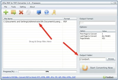 Giao diện của Zilla PDF to TXT Converter được thiết kế trực quan, giúp người dùng dễ dàng thao tác và chuyển đổi file.