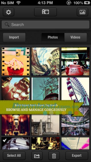 Nhập và xuất hàng loạt ảnh hoặc video vào Camera Roll một cách thuận tiện.