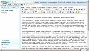Tuy nhiên, so với các phần mềm như Word hay ThinkFree, Zoho Write còn hạn chế về tính năng. Bộ kiểm tra chính tả chỉ gạch chân lỗi, không cung cấp gợi ý thay thế.