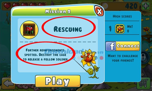 Một số màn chơi tập trung vào nhiệm vụ giải cứu, nơi nhân vật chính bị giam giữ trong lồng và bạn phải bắn liên tục vào lồng để giải thoát họ. Nhân vật được giải cứu sẽ trở thành xạ thủ mới cho màn chơi tiếp theo, có thể là cà chua (với vũ khí là những quả cà chua, chỉ cần hai phát là đủ để hạ gục zombie), hoặc trái lê với khả năng bay lượn và tấn công thây ma trực tiếp...