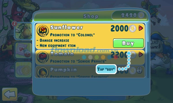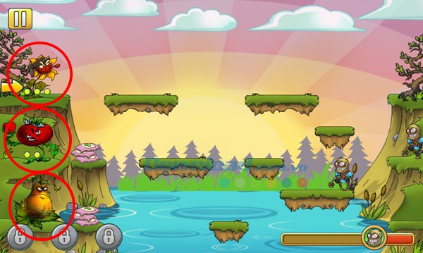 Ở các màn chơi đầu tiên, số lượng zombie còn ít và tốc độ di chuyển chậm. Nhưng khi tiến sâu hơn, bạn sẽ đối mặt với nhiều loại thây ma khó nhằn hơn, ví dụ như cà rốt lao nhanh về phía tháp phòng thủ, hoặc thây ma nhảy dù từ máy bay... Mỗi khi tiêu diệt được một thây ma, bạn sẽ nhận ngay 30 đồng tiền vàng. Nếu có nhiều hơn một anh hùng trong đội hình phòng thủ, bạn có thể chạm vào từng nhân vật để điều khiển bắn. Trong khi một nhân vật đang nạp đạn, hãy nhanh chóng chuyển sang nhân vật khác để tận dụng tối đa thời gian.